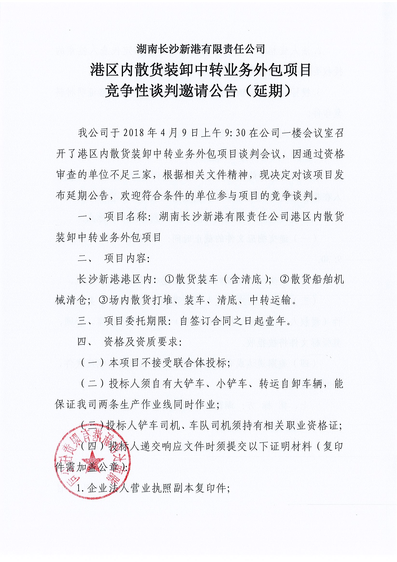 港區(qū)內散貨裝卸中轉業(yè)務外包項目競爭性談判邀請公告(延期)