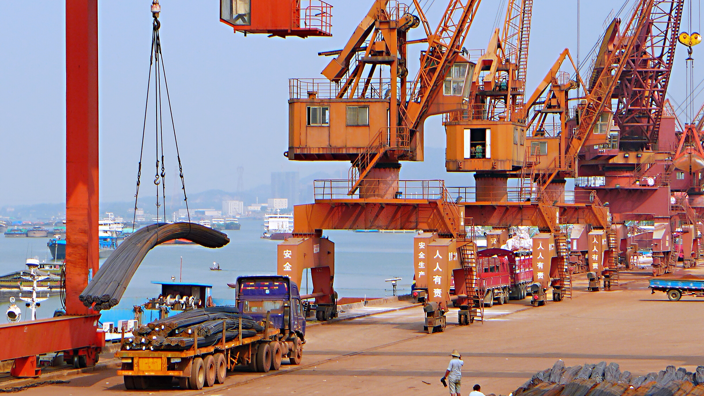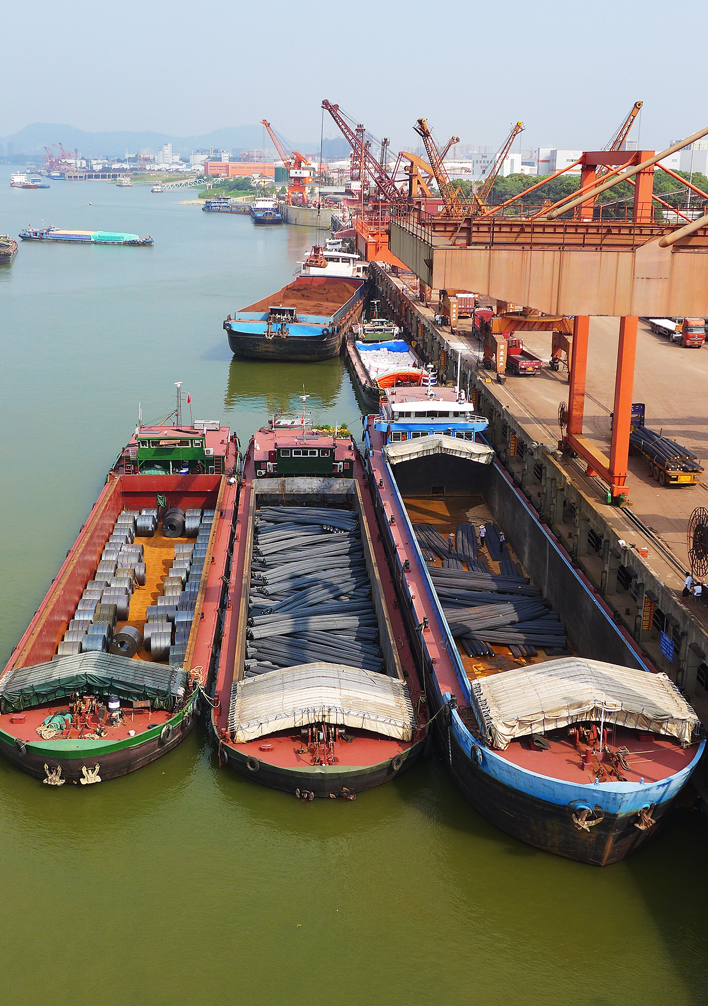 9月5日,長沙新港碼頭貨物裝卸呈現(xiàn)一派繁忙景象。借助“一帶一路”倡議和長江經(jīng)濟帶國家戰(zhàn)略。