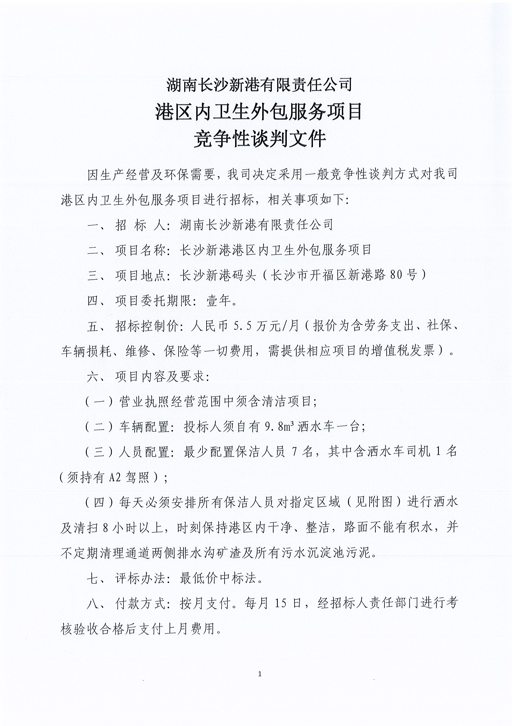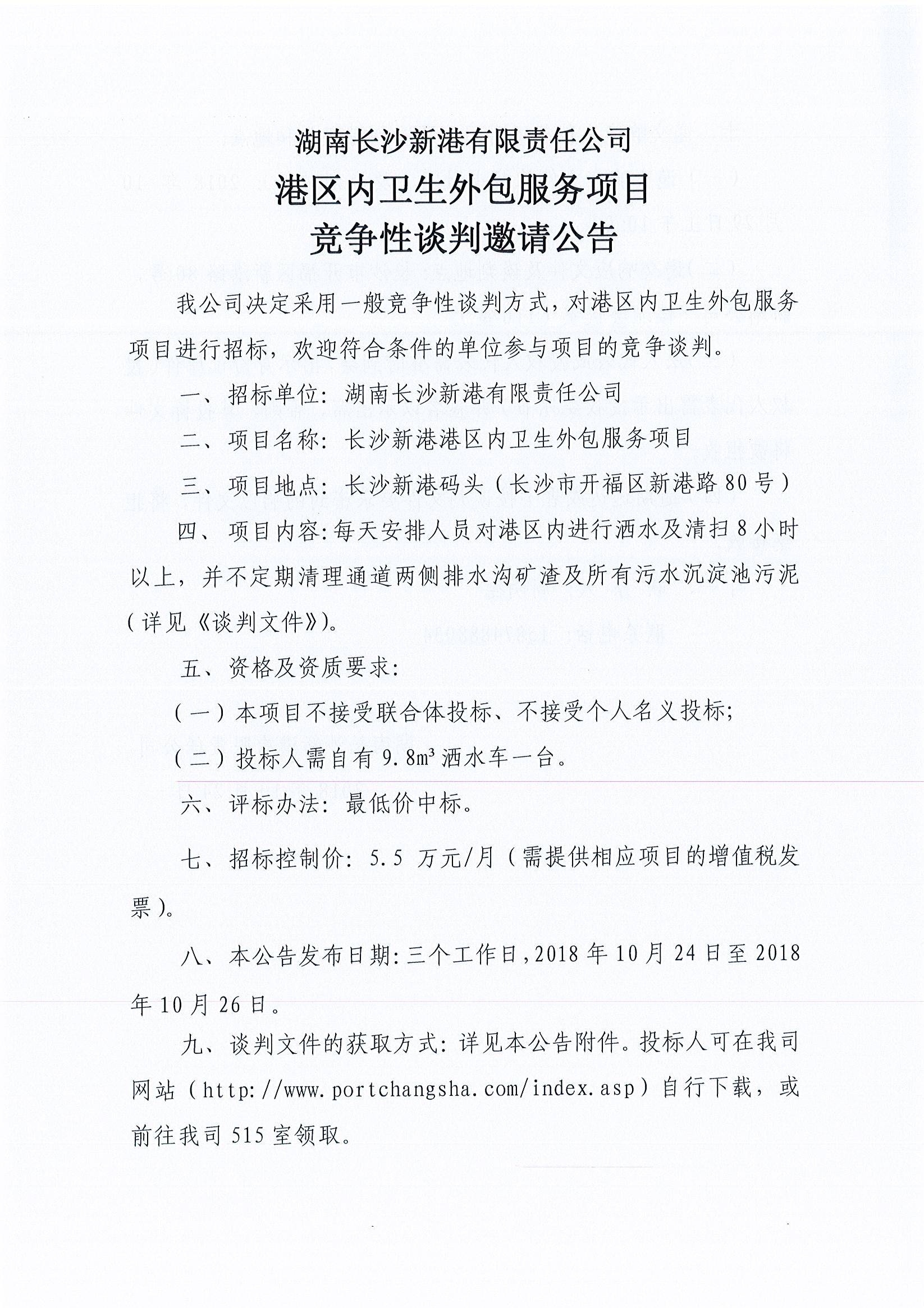 湖南長沙新港有限責(zé)任公司 港區(qū)內(nèi)衛(wèi)生外包服務(wù)競(jìng)爭(zhēng)性談判邀請(qǐng)公告