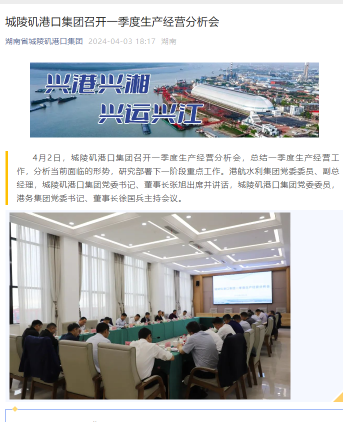 城陵磯港口集團(tuán)召開一季度生產(chǎn)經(jīng)營分析會