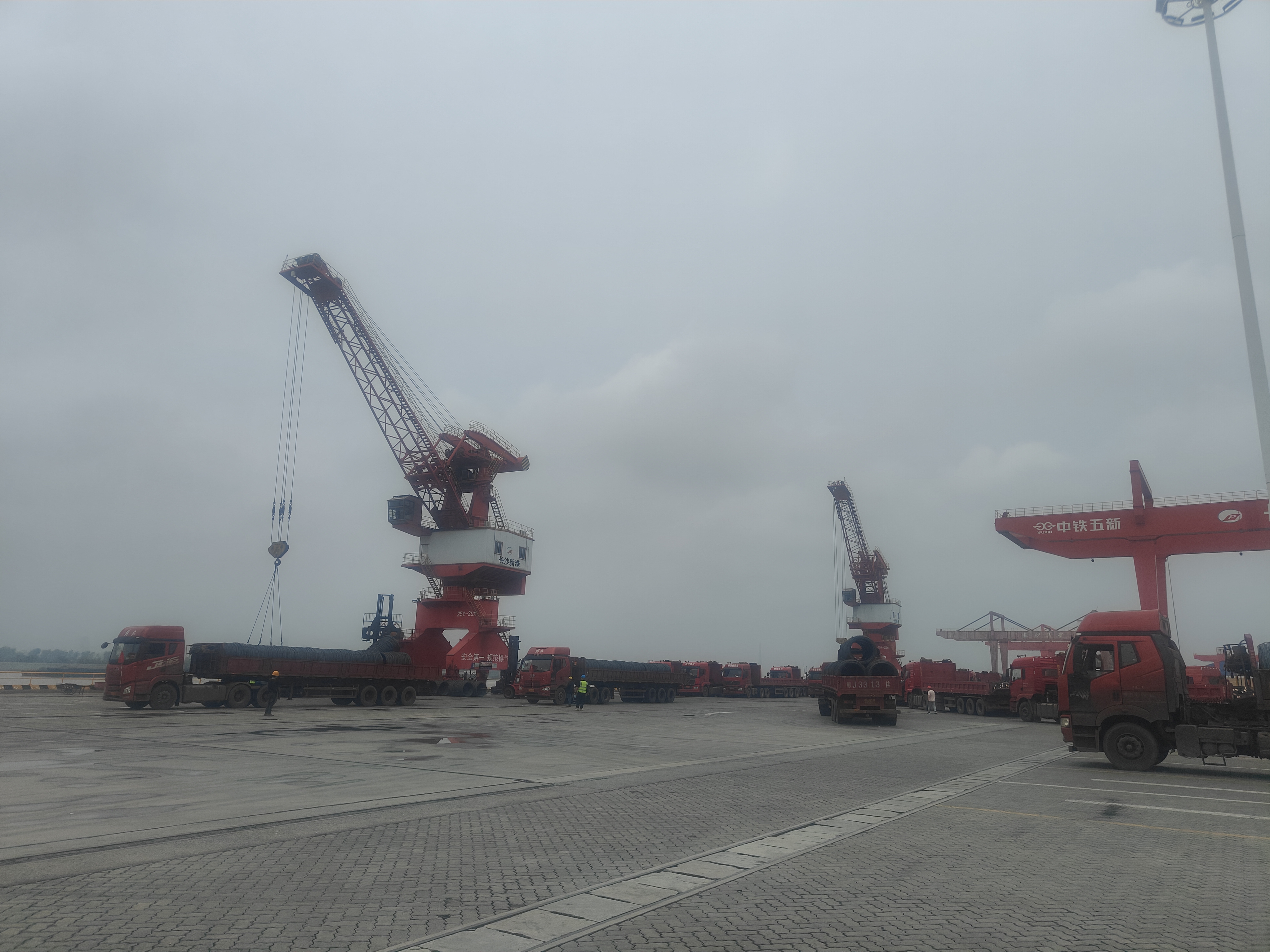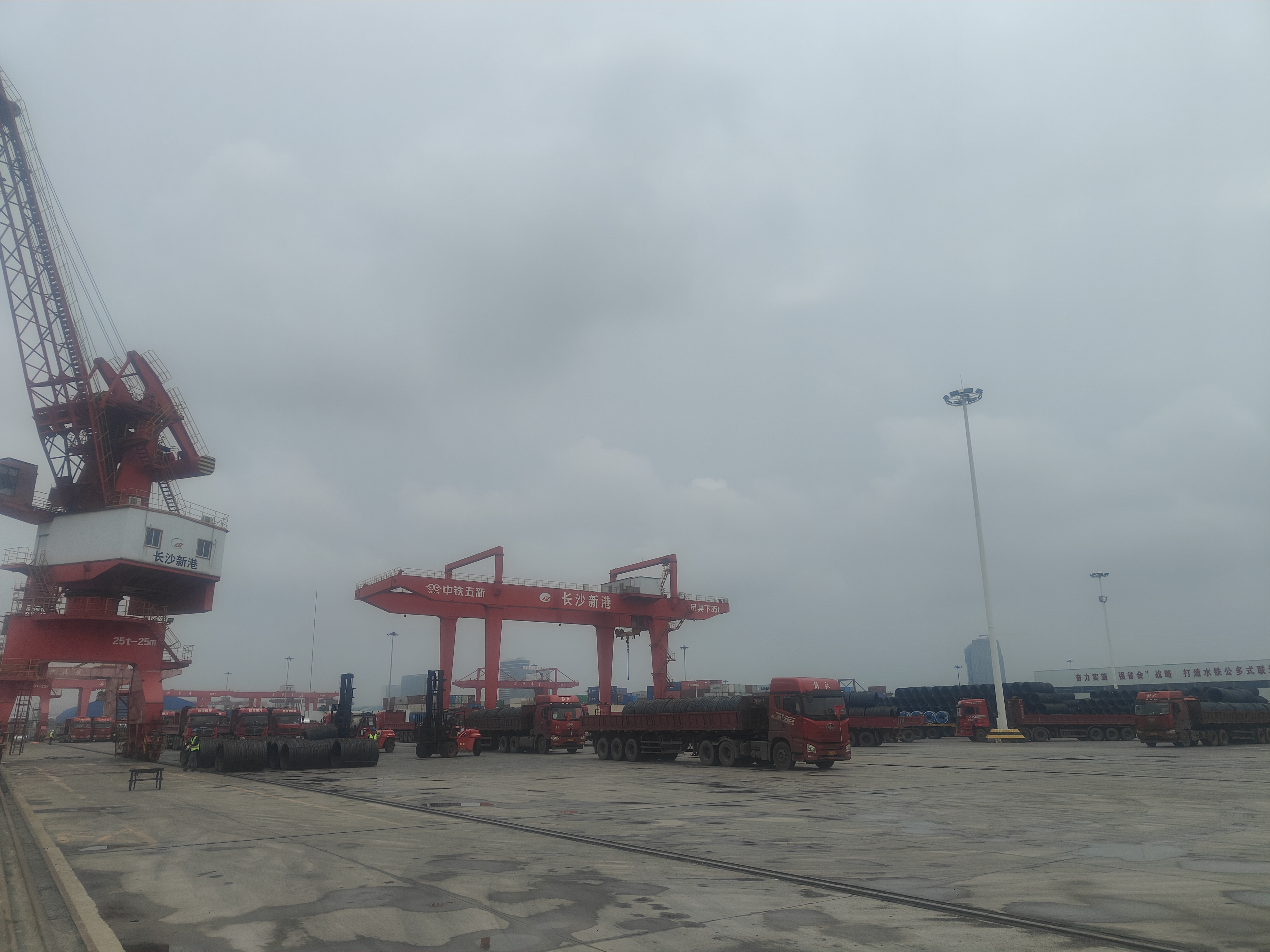 圖為“五一”期間,長沙新港港區(qū)對貨物進(jìn)行集港作業(yè)