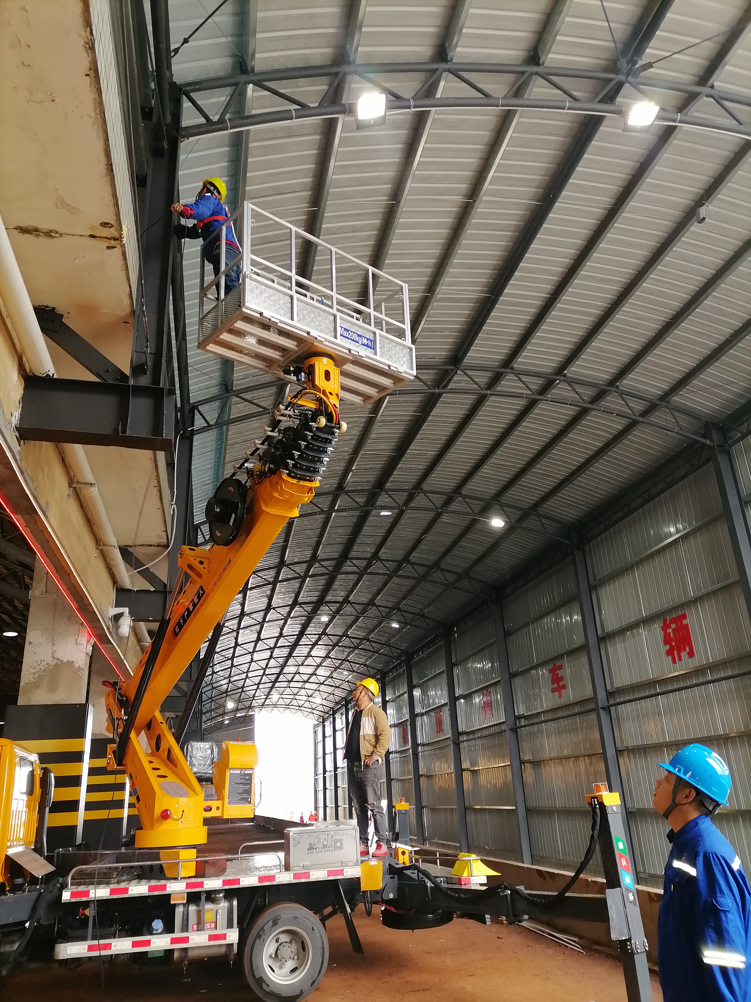 圖為“五一”期間,長沙新港對轉(zhuǎn)運(yùn)倉庫監(jiān)控進(jìn)行搶修作業(yè)。 |