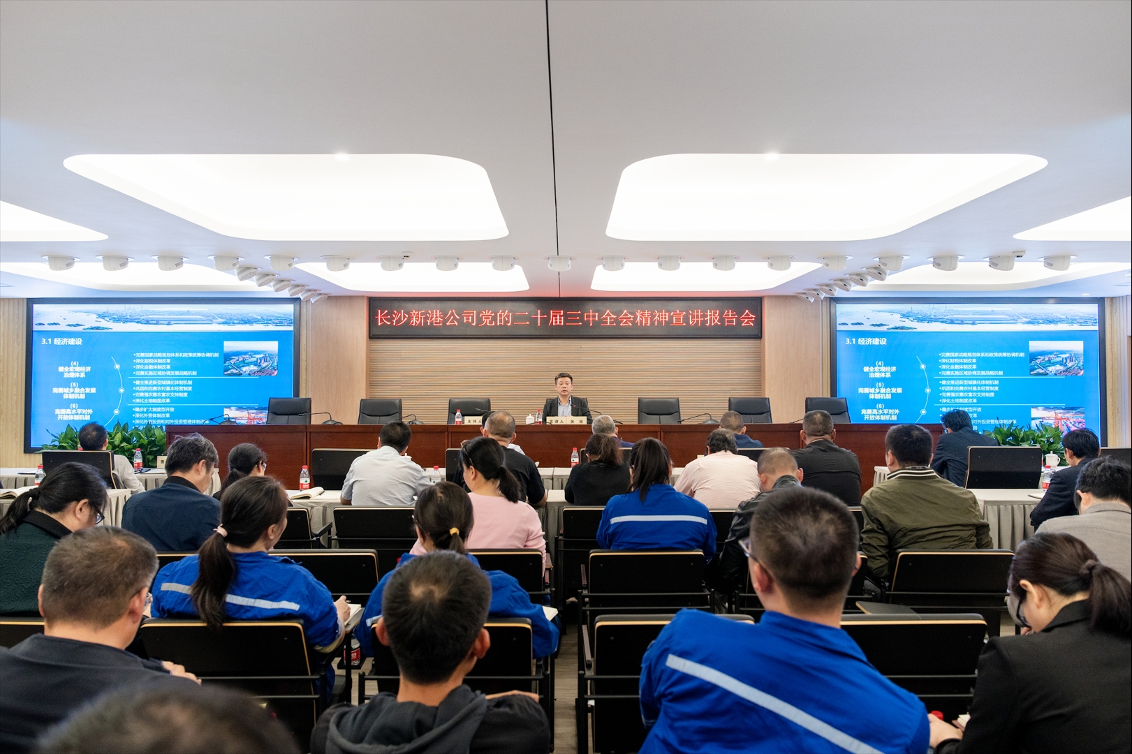 11月14日,省港航水利集團黨委委員、副總經(jīng)理,省城陵磯港口集團黨委書記、董事長張旭向長沙新港公司全體黨員干部宣講黨的二十屆三中全會精神。