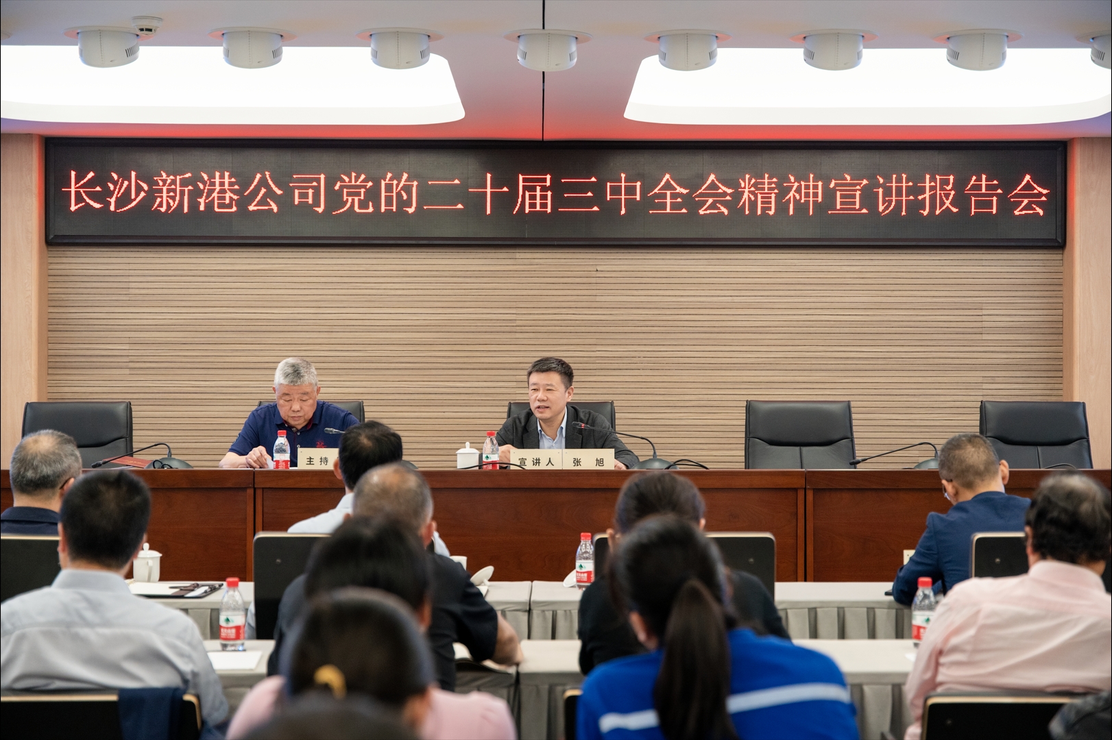 張旭結合思想工作實際,正確認識黨的二十屆三中全會召開的時代背景、深刻理解全面深化改革的重大意義和總體要求準確把握進一步全面深化改革的戰(zhàn)略部署、深入學習貫徹全會精神中推動集團高質量發(fā)展等四個方面,向長沙新港全體黨員干部開展宣講,分享學習體會。他指出,全體黨員干部要切實把思想和行動統(tǒng)一到黨中央精神上來,深刻理解全會精神的核心要義、豐富內涵和實踐要求,牢牢把握進一步全面深化改革、推進中國式現(xiàn)代化的重點任務,以釘釘子精神抓好改革任務落實。
