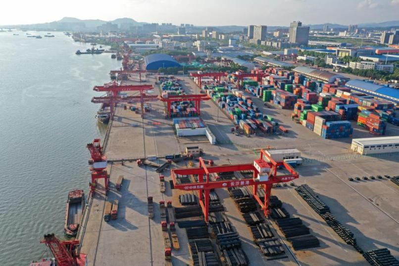 2023年8月,為深度融入、有力推動長江經(jīng)濟(jì)帶高質(zhì)量發(fā)展,湖南聚焦重點(diǎn)突破口,以一盤棋思維高位推進(jìn)省內(nèi)港口資源統(tǒng)籌整合,港航水利集團(tuán)作為全省港航資源整合的統(tǒng)一平臺。2024年2月28日,長沙新港公司正式加入湖南省城陵磯港口集團(tuán),在湖南省港航水利集團(tuán)及湖南省城陵磯港口集團(tuán)黨委的正確領(lǐng)導(dǎo)和大力支持下,長沙新港以完善港口體系建設(shè)、支持地方經(jīng)濟(jì)發(fā)展、提升水運(yùn)占比、降低綜合物流成本為使命,錨定高質(zhì)量發(fā)展目標(biāo),深化改革創(chuàng)新,強(qiáng)化多式聯(lián)運(yùn)優(yōu)勢,充分發(fā)揮黨委把方向、管大局、保落實(shí)作用,團(tuán)結(jié)帶領(lǐng)全司廣大黨員干部和職工群眾,艱苦創(chuàng)新業(yè),開拓爭一流,不斷提升港口綜合競爭力,交出了一份亮眼的“答卷”。從鐵路進(jìn)港到智慧升級,從業(yè)務(wù)拓荒到綠色轉(zhuǎn)型,長沙新港以實(shí)干擔(dān)當(dāng)踐行了內(nèi)河港口轉(zhuǎn)型升級的生動實(shí)踐,共同譜寫了長沙新港高質(zhì)量發(fā)展的新篇章。 一、破局開路:鐵路進(jìn)港激活多式聯(lián)運(yùn)新動能 2023年6月,歷時(shí)三年建設(shè)的長沙新港專用鐵路正式通車運(yùn)營,標(biāo)志著省會長沙首條疏港鐵路全線貫通,徹底打通公鐵水多式聯(lián)運(yùn)“最后一公里”。這一突破性工程不僅讓港口邁入“公鐵水”多式聯(lián)運(yùn)新時(shí)代,更成為撬動業(yè)務(wù)增量的核心引擎。專用鐵路開通以來,鐵路貨運(yùn)量從2023年的30.6萬噸攀升至2024年的143.5萬噸,業(yè)務(wù)模式從貨源單一到達(dá)拓展至“雙向物流”,成功引進(jìn)煤炭“散改集”、鋼材“公轉(zhuǎn)鐵”等新業(yè)態(tài),鐵路運(yùn)輸貨物品類增至10余種。蓬勃發(fā)展的多式聯(lián)運(yùn)業(yè)務(wù)助力“一帶一路”、長江經(jīng)濟(jì)帶發(fā)展,初顯成效。