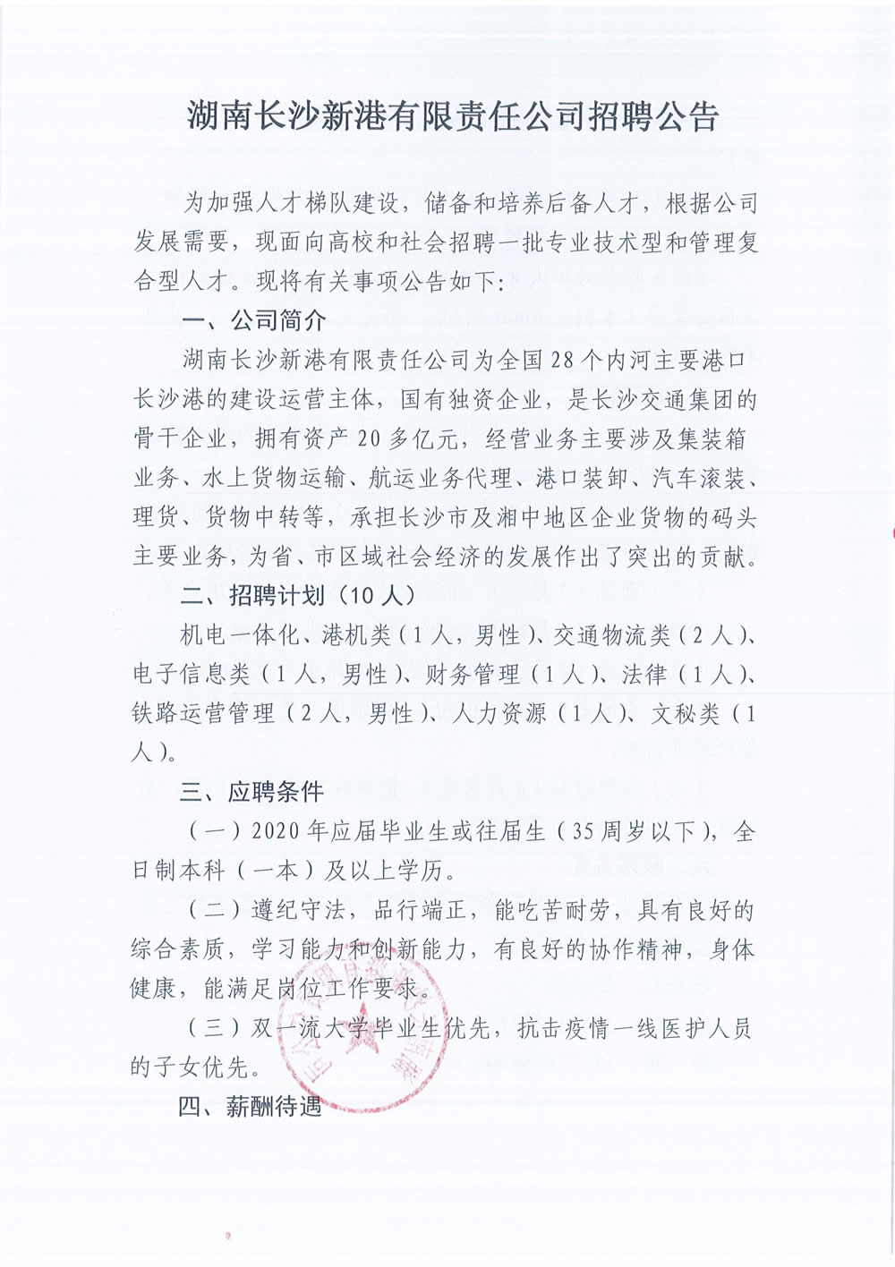 湖南長沙新港有限責(zé)任公司招聘公告