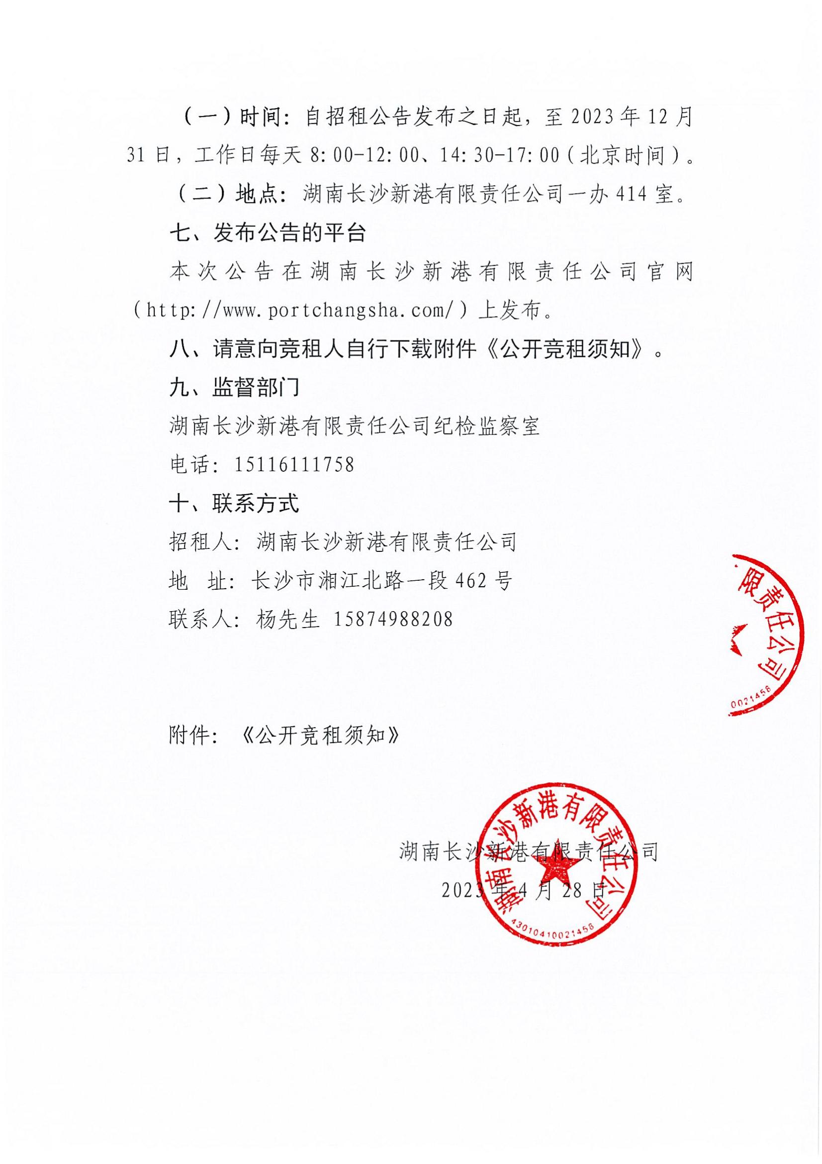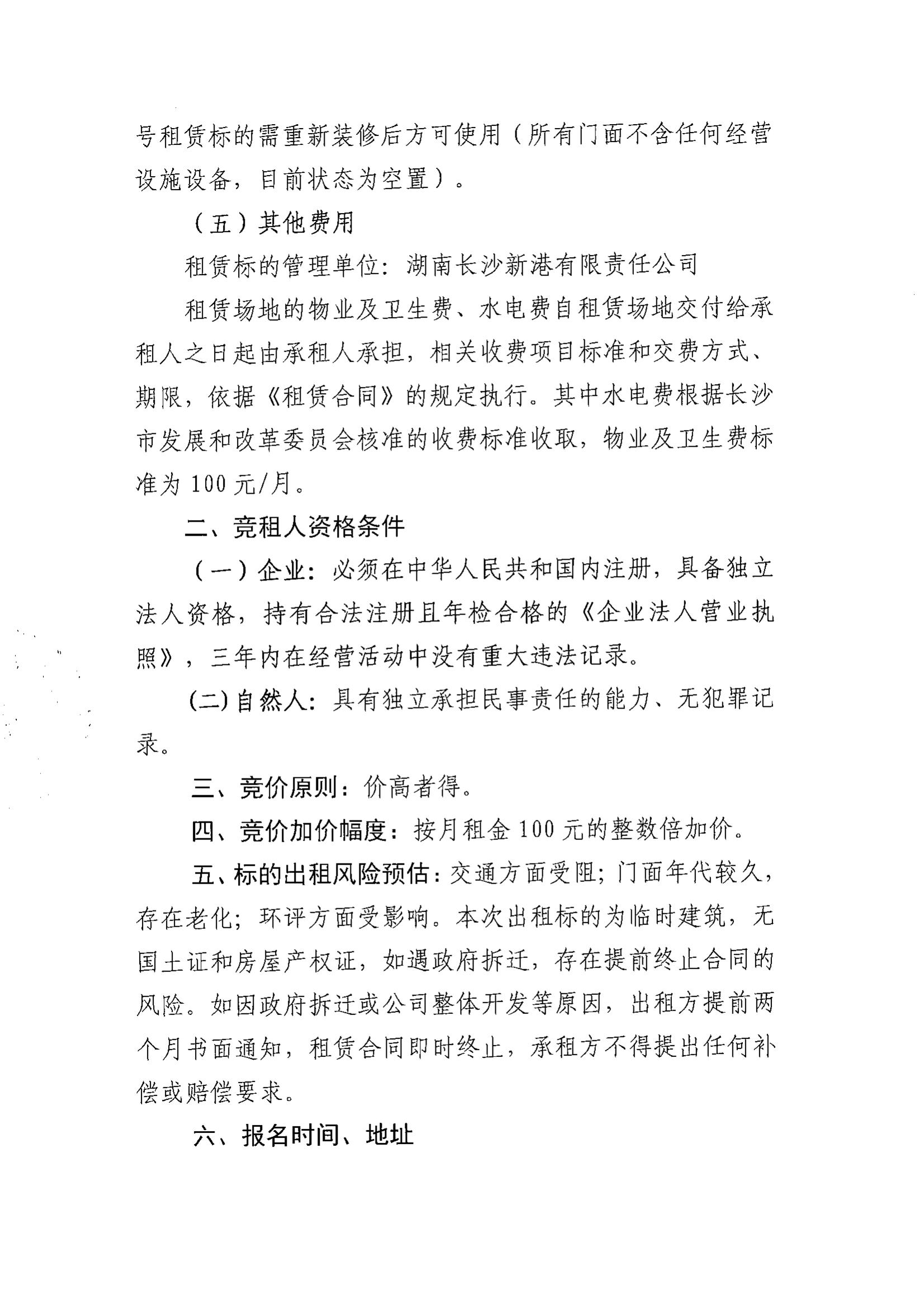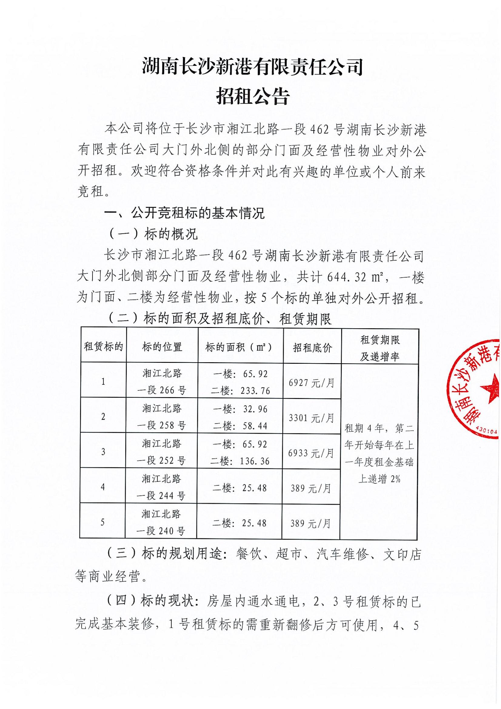 湖南長(zhǎng)沙新港有限責(zé)任公司招租公告