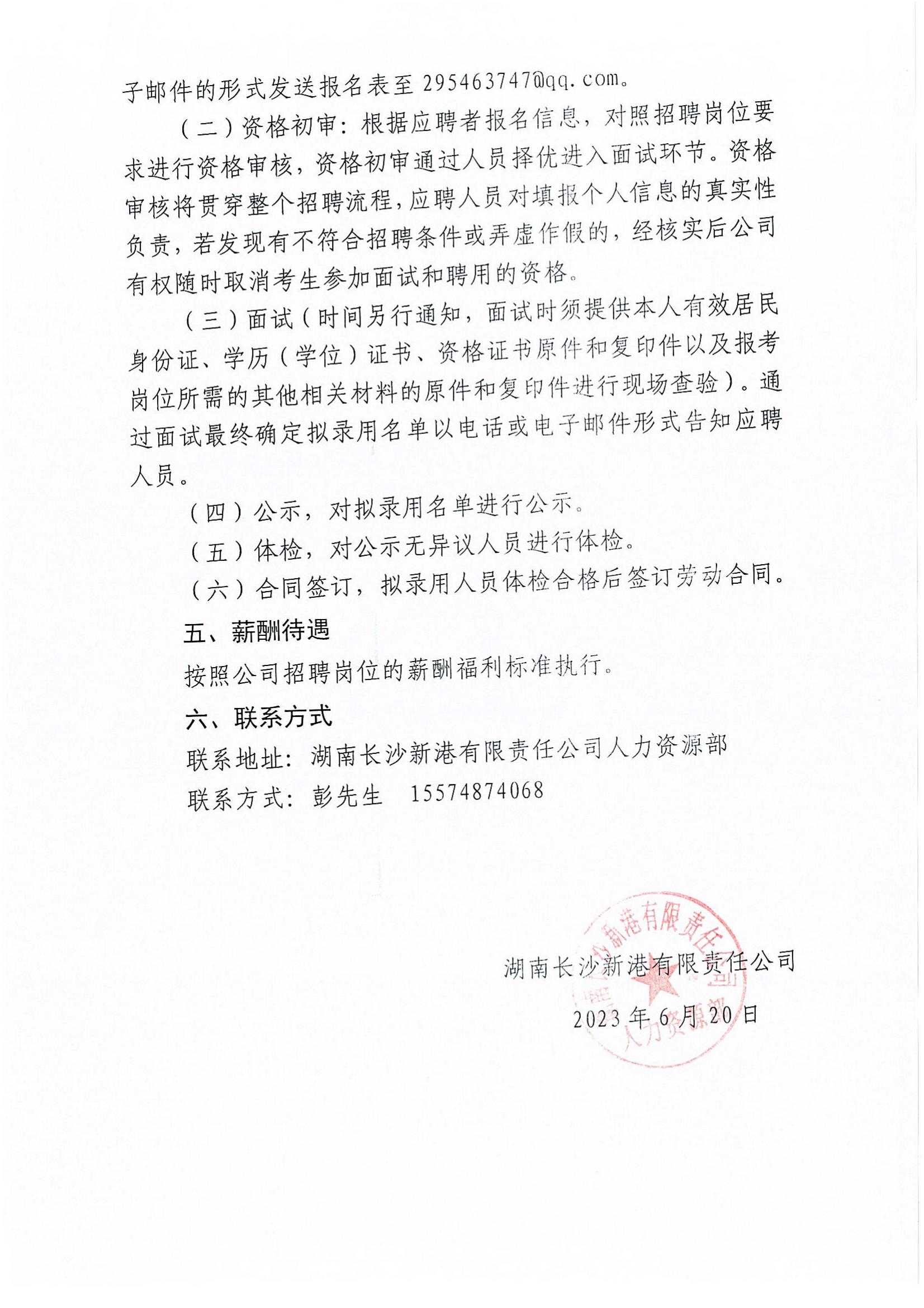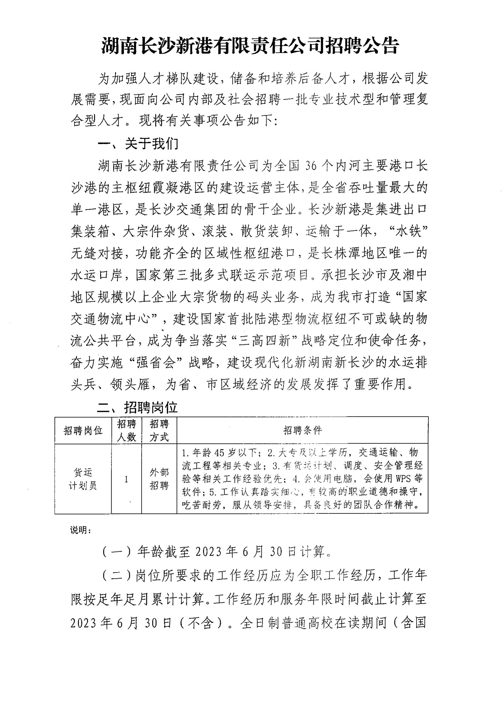 湖南長(zhǎng)沙新港有限責(zé)任公司招聘公告