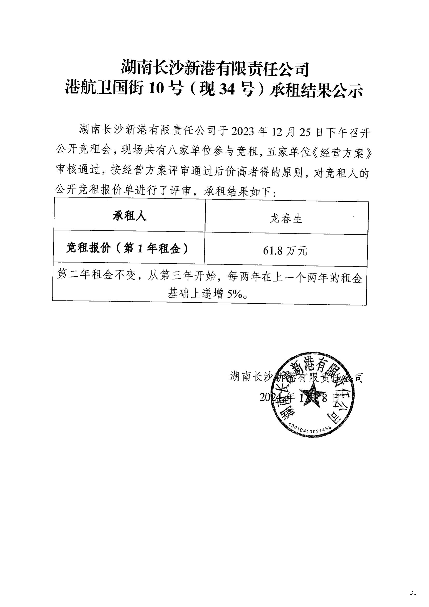 港航衛(wèi)國街10號(hào)(現(xiàn)34號(hào))承租結(jié)果公示