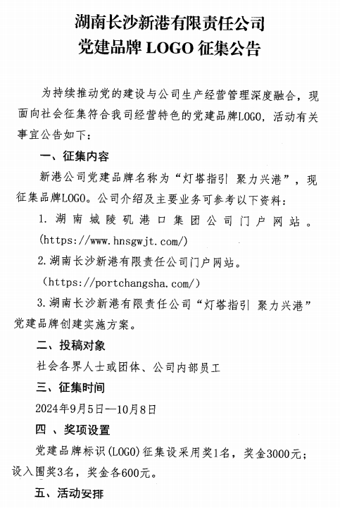 湖南長(zhǎng)沙新港有限責(zé)任公司黨建品牌 LOGO 征集公告